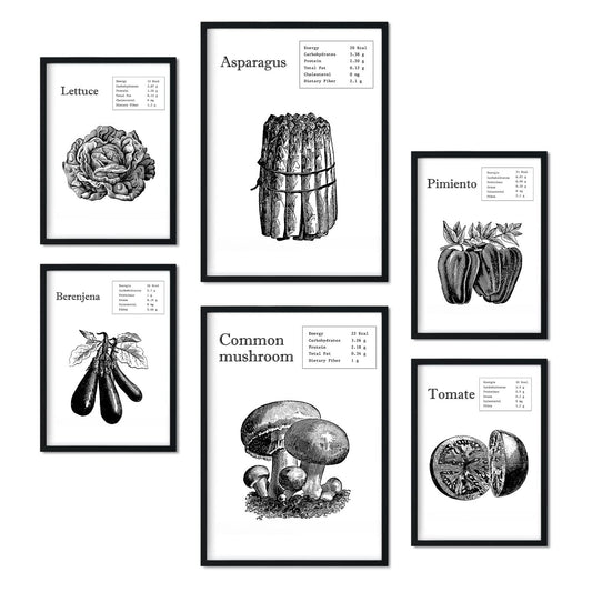 Set de 6 láminas de vegetales estilo collage