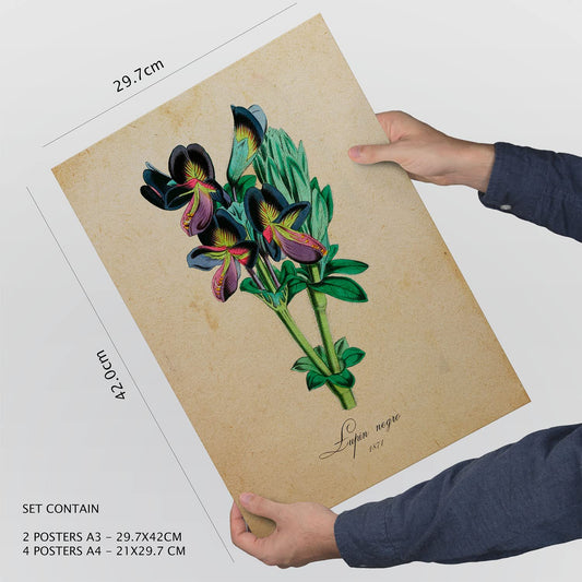 Set de 6 láminas botánicas estilo vintage con ilustraciones de flores antiguas en tonos suaves para decoración de salón, dormitorio o pasillo, 2 grandes y 4 medianos