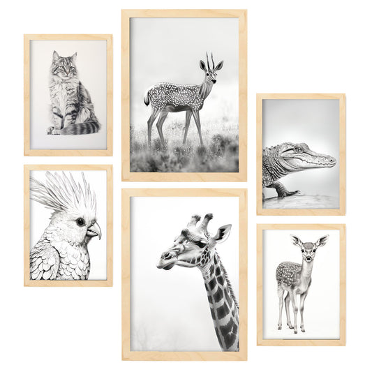 Nacnic Set de 6 Láminas de Animales de Lápiz para Guardería