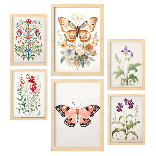 Nacnic Set de 6 Láminas de Flores y Mariposas