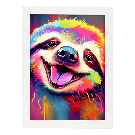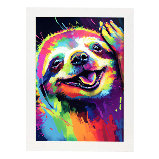 Lámina Nacnic de Perezoso Sonriente en Estilo Lisa Fran Abstracto