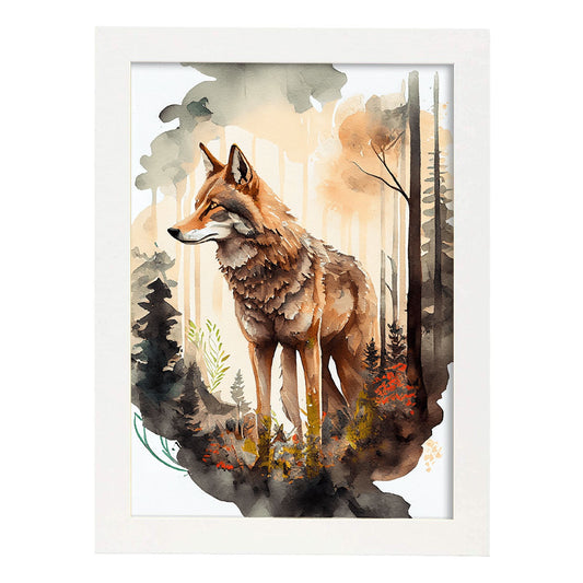 Lámina Nacnic de Acuarela de Coyote en el Bosque