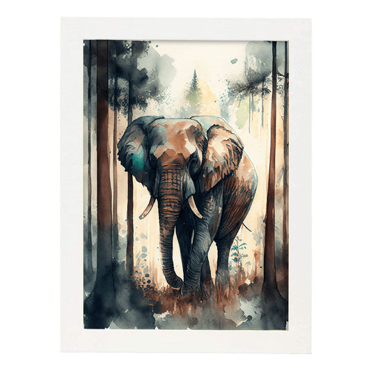 Lámina Acuarela de Elefante en el Bosque Nacnic