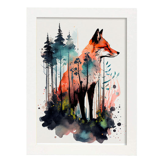 Lámina Acuarela de Zorro en el Bosque Nacnic