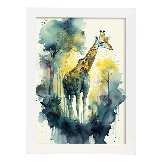 Lámina Acuarela de Jirafa en el Bosque Nacnic