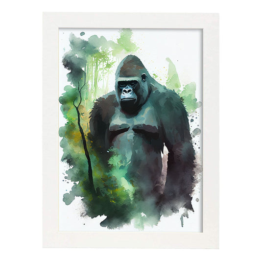 Lámina Acuarela de Gorila en el Bosque Nacnic