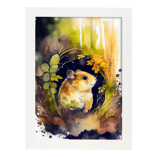 Lámina Nacnic de Acuarela de Hámster en el Bosque