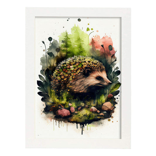 Lámina Nacnic de Erizo en el Bosque Acuarela