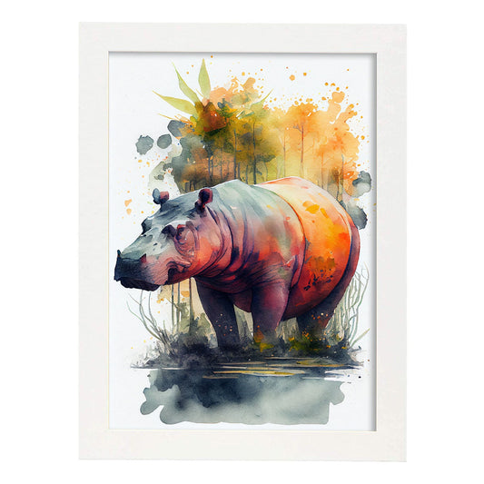 Lámina Nacnic de Hipopótamo en Acuarela en el Bosque