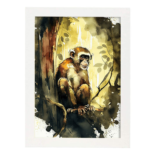 Lámina Nacnic de Mono en Acuarela en el Bosque