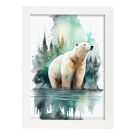 Lámina Nacnic de Oso Polar en Acuarela en el Bosque para Dormitorio