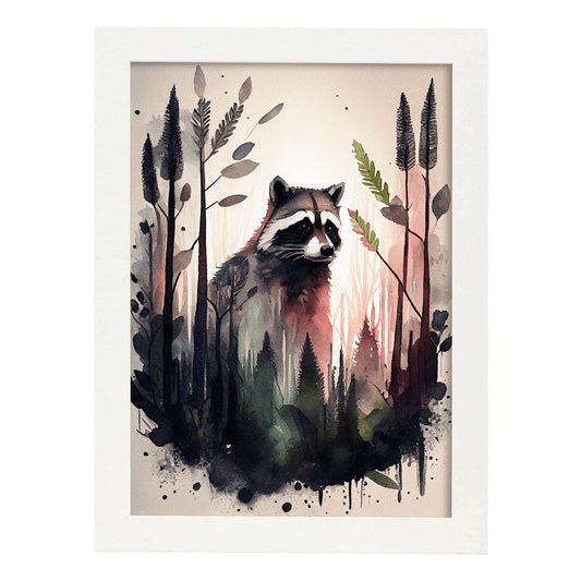 Lámina Acuarela de Mapache en el Bosque Nacnic