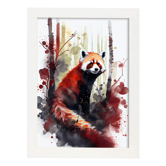 Lámina Nacnic de Panda Rojo en Acuarela en el Bosque