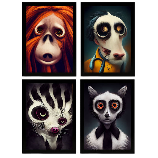 Láminas de Animales Estilo Burton para Diseño de Interiores y Decoración, Colección Set 4