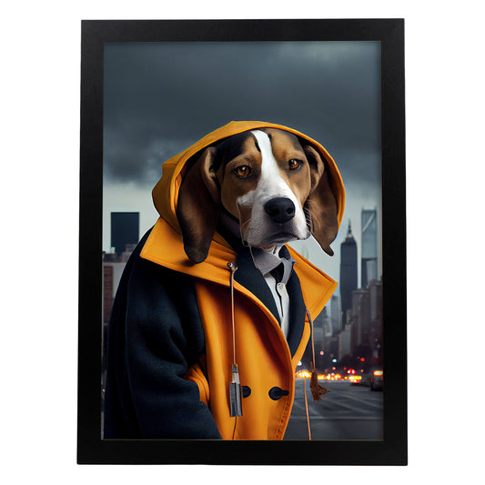 Lámina Nacnic de Beagle Compasivo en Estilo Fotografía Colorida con Ropa Humana