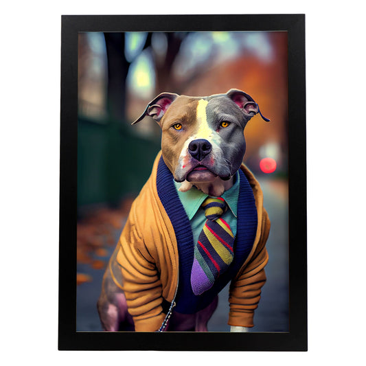 Lámina Nacnic de Staffordshire Terrier Colorido con Ropa Humana en Estilo Fotografía