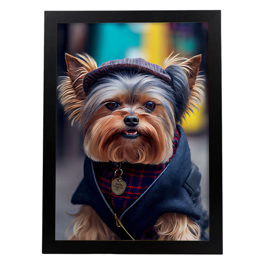 Lámina Nacnic de Yorkshire Terrier con Ropa Humana en Fotografía a Color