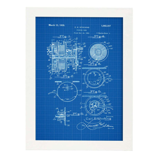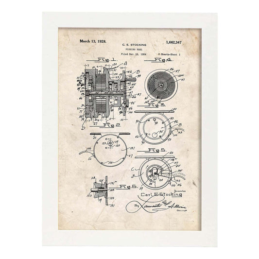Lámina de Patente de Carrete de Pescar Antigua
