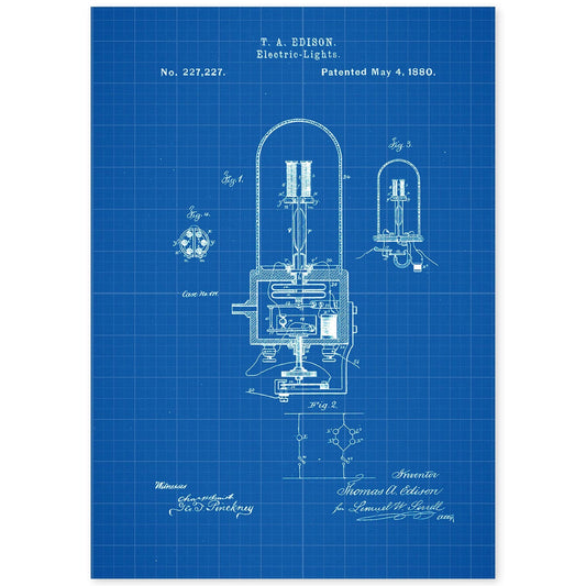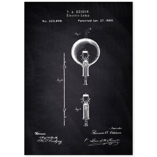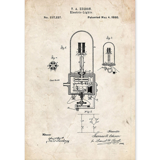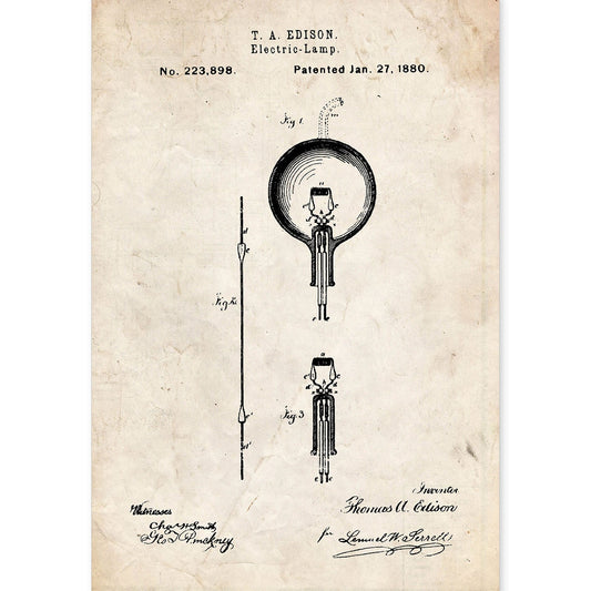 Lámina de Patente de Bombilla Eléctrica Antigua