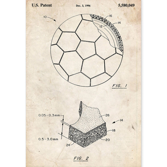 Lámina de Patente Antigua de Pelota de Futbol