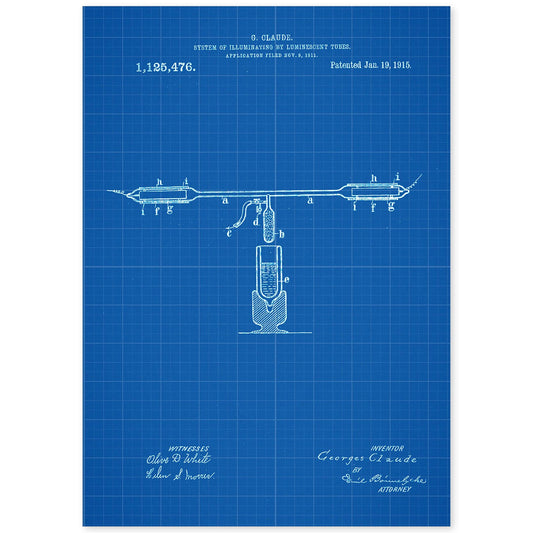 Póster de Patente de Tubos Fluorescentes Antigua