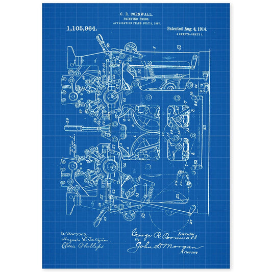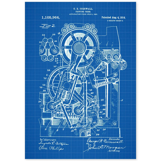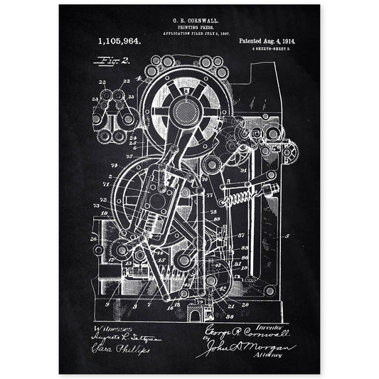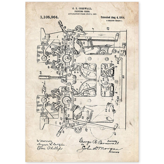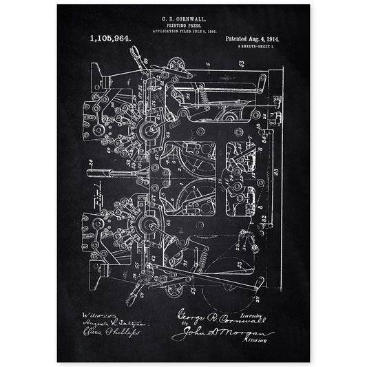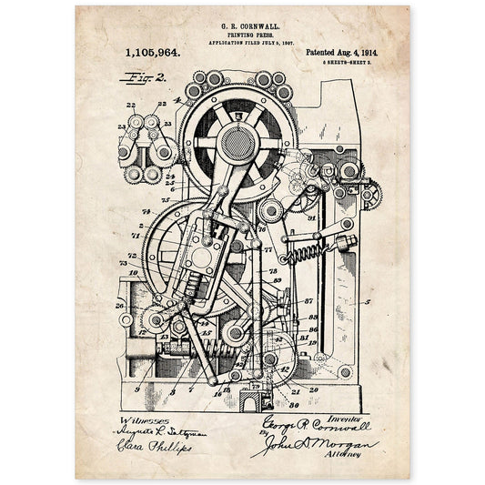 Lámina de Patente de Prensa de Impresión 5 Antigua
