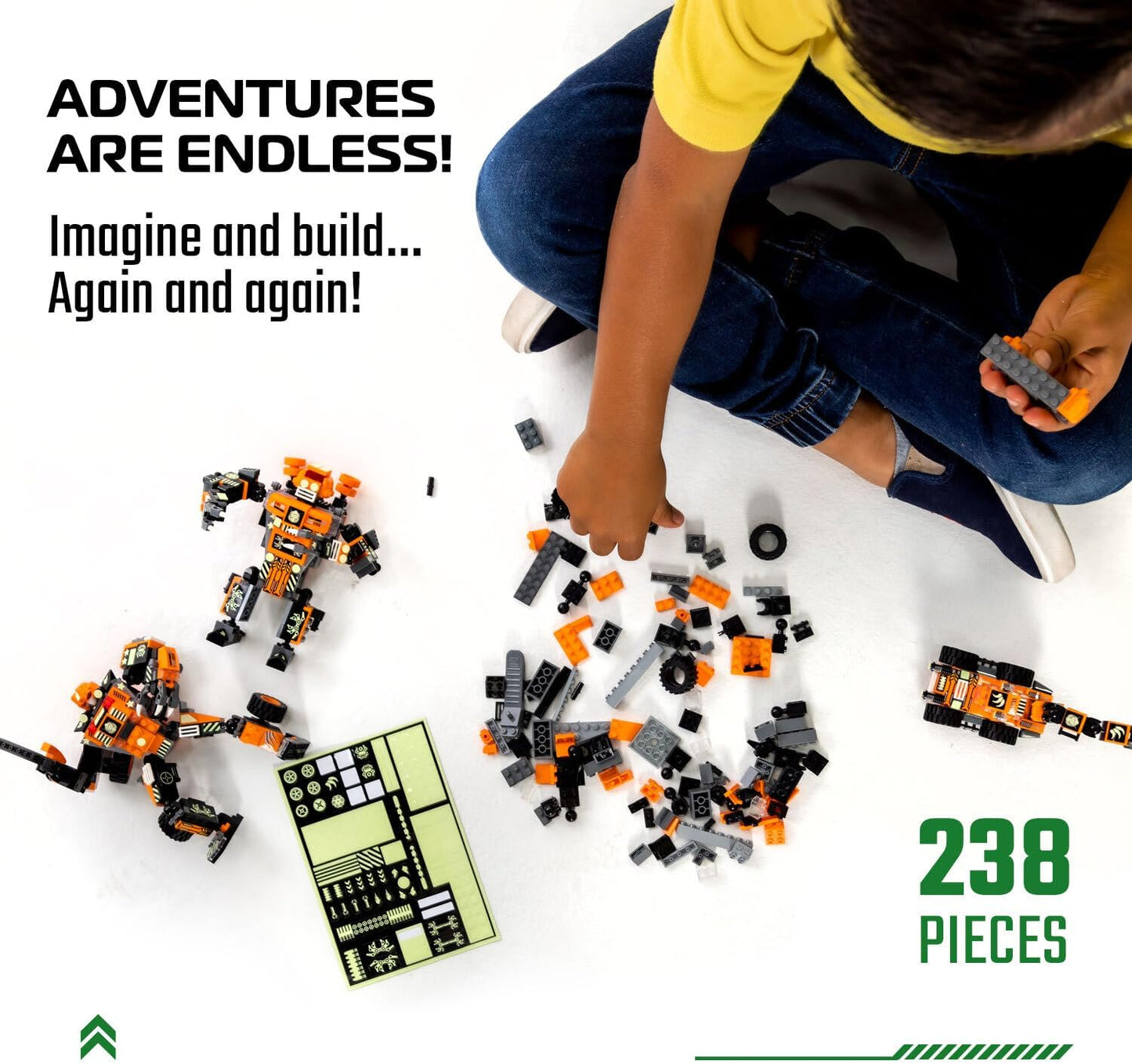 【Construye tus propias aventuras】Los juguetes de construcción STEM de Robotryx Tangryp Orange para niños de 7 años se combinan y recombinan para formar 3 conjuntos en uno. Construye y crea robots superhéroes populares, vehículos de construcción y animales. Cada uno viene con calcomanías divertidas que brillan en la oscuridad para personalizarlos tú mismo. También hay una calcomanía con el logotipo de Robotryx increíble para decorar, etiquetar y pegar donde quieras. También se incluyen separador de ladrillos e instrucciones para un juego fluido. Contiene 221 piezas.【Precio económico y es un gran regalo para cualquier momento】Para familias frugales que buscan regalos espaciales emocionantes para niños y juguetes para involucrar a sus hijos con emocionantes actividades de narración de historias y aprendizaje STEM, los juguetes de construcción de robots mecánicos Robotryx son regalos geniales para niños de 7 años para Navidad o en cualquier momento. Excelentes regalos para cumpleaños, regalos de Navidad para niños, días festivos, ocasiones especiales, recompensas por la excelencia en la escuela primaria y más.【Juega y empaca para divertirte sin ensuciar】Los únicos juguetes de construcción de bloques educativos creativos que vienen con su propia caja de almacenamiento. Resuelve la principal preocupación de los padres para que las piezas no causen desorden, se pierdan, se extravíen o sean mal manejadas por hermanos menores o mascotas de la familia. A los niños les encantará el arte colorido en el contenedor de almacenamiento e inspirará historias de superhéroes de acción y aventuras para que creen, al mismo tiempo que ayuda a enseñar habilidades organizativas.【Una línea completa de Robotryx para aventuras infinitas】¡Tu hijo disfrutará de infinitas horas de diversión de construcción STEM con los juguetes de robot mecánico Robotryx! No solo cada figura tiene tres formas que se pueden combinar y recombinar para construir sus propios juguetes espaciales divertidos y crear múltiples personajes de juego divertidos como robots, vehículos y animales, sino que también vienen en varios colores. Los diferentes conjuntos se pueden jugar juntos para mezclar y combinar las emocionantes aventuras de la historia de las figuras de acción que son los mejores regalos para niños de 6 años.【Diversión segura y resistente para momentos de juego emocionantes】Las piezas de juego de construcción de nuestros juguetes Robotryx son seguras para sus hijos, hechas de plástico ABS libre de tóxicos. Los materiales duraderos y fuertes son resistentes y confiables y resisten el juego brusco y repetido. Tienen el tamaño justo para evitar la asfixia. Los juegos de juguetes de construcción de robots Robotryx están diseñados para mantenerse resistentes y brindar años de emoción a su hijo.