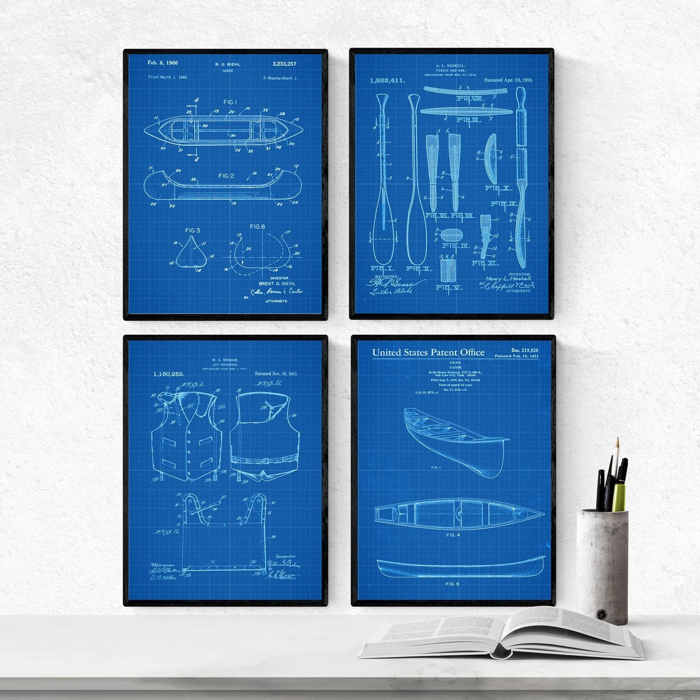 Pack de 4 Láminas Patentes de Kayak Antiguas Azul