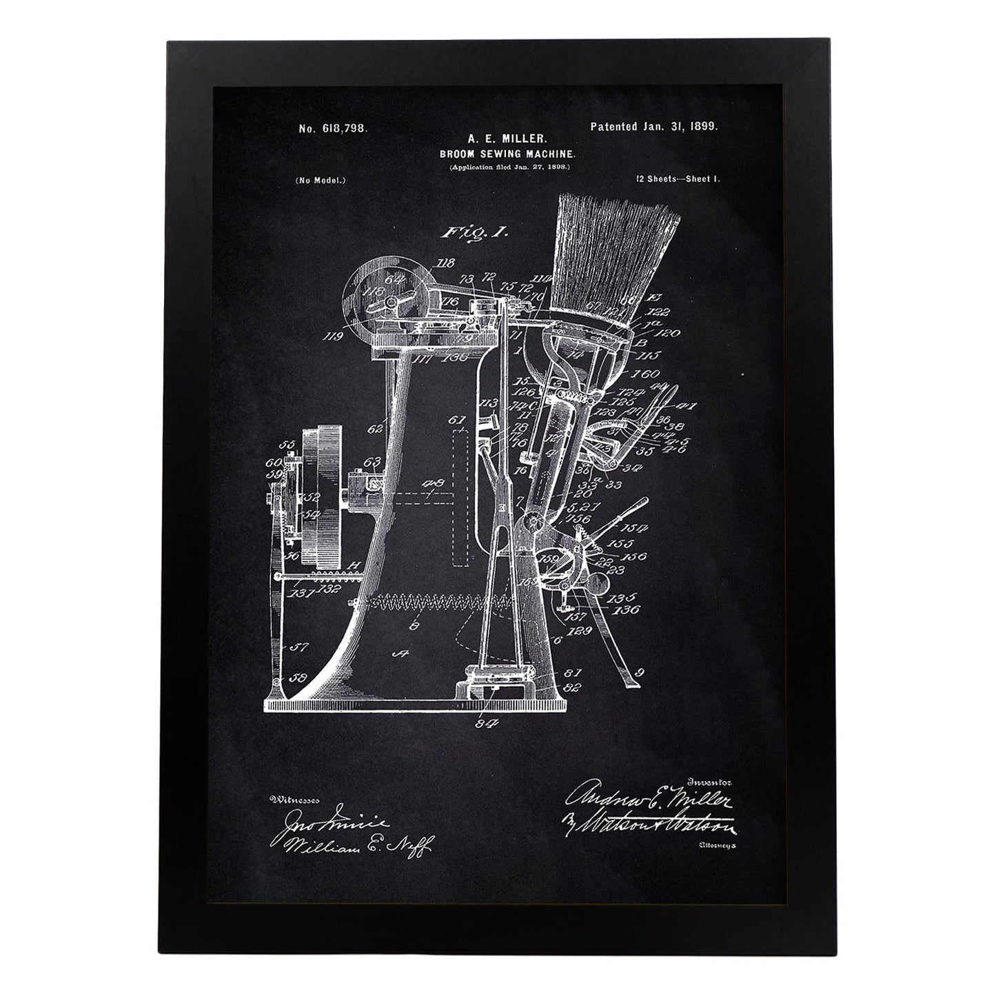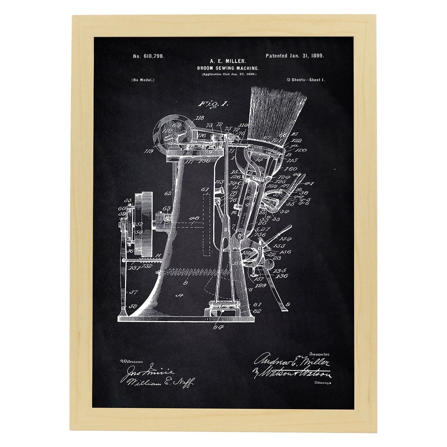 Lámina de Patente de Máquina de Coser Escobas
