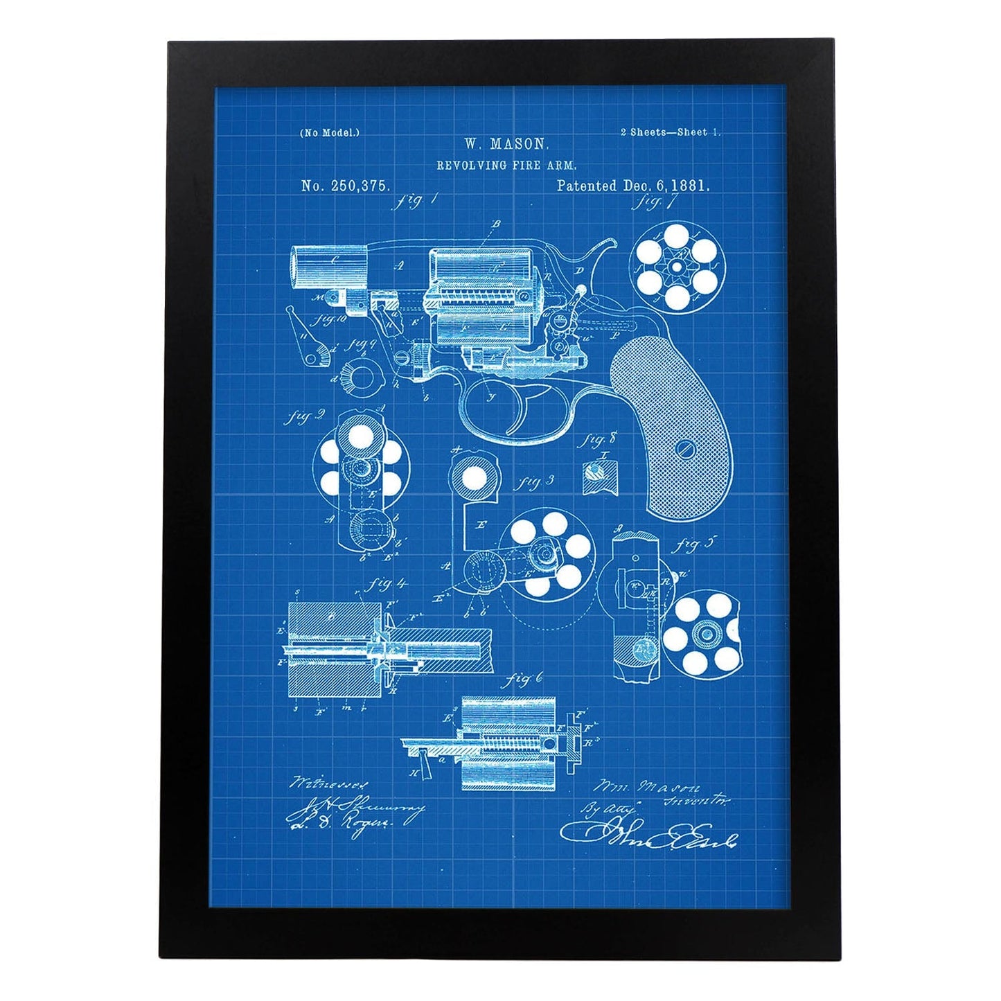 Lámina de Patente de Revolver Antigua