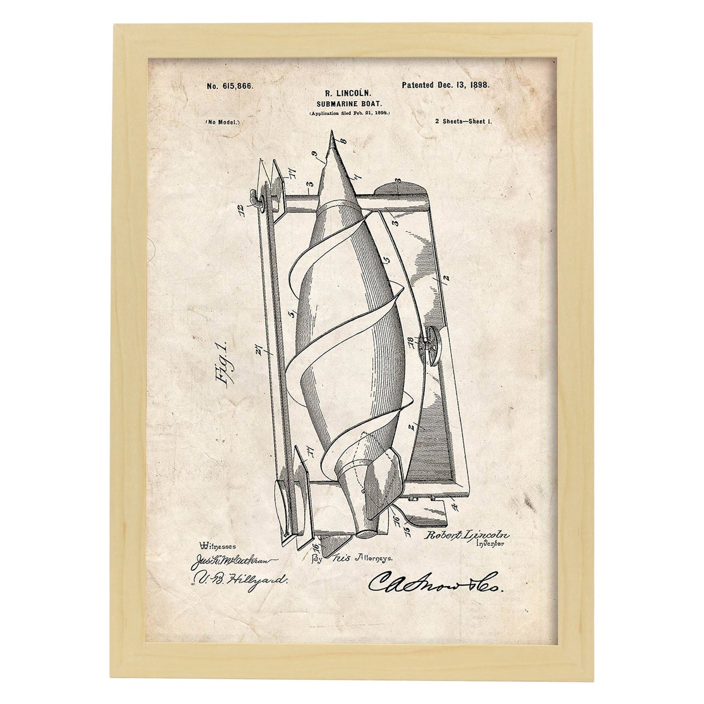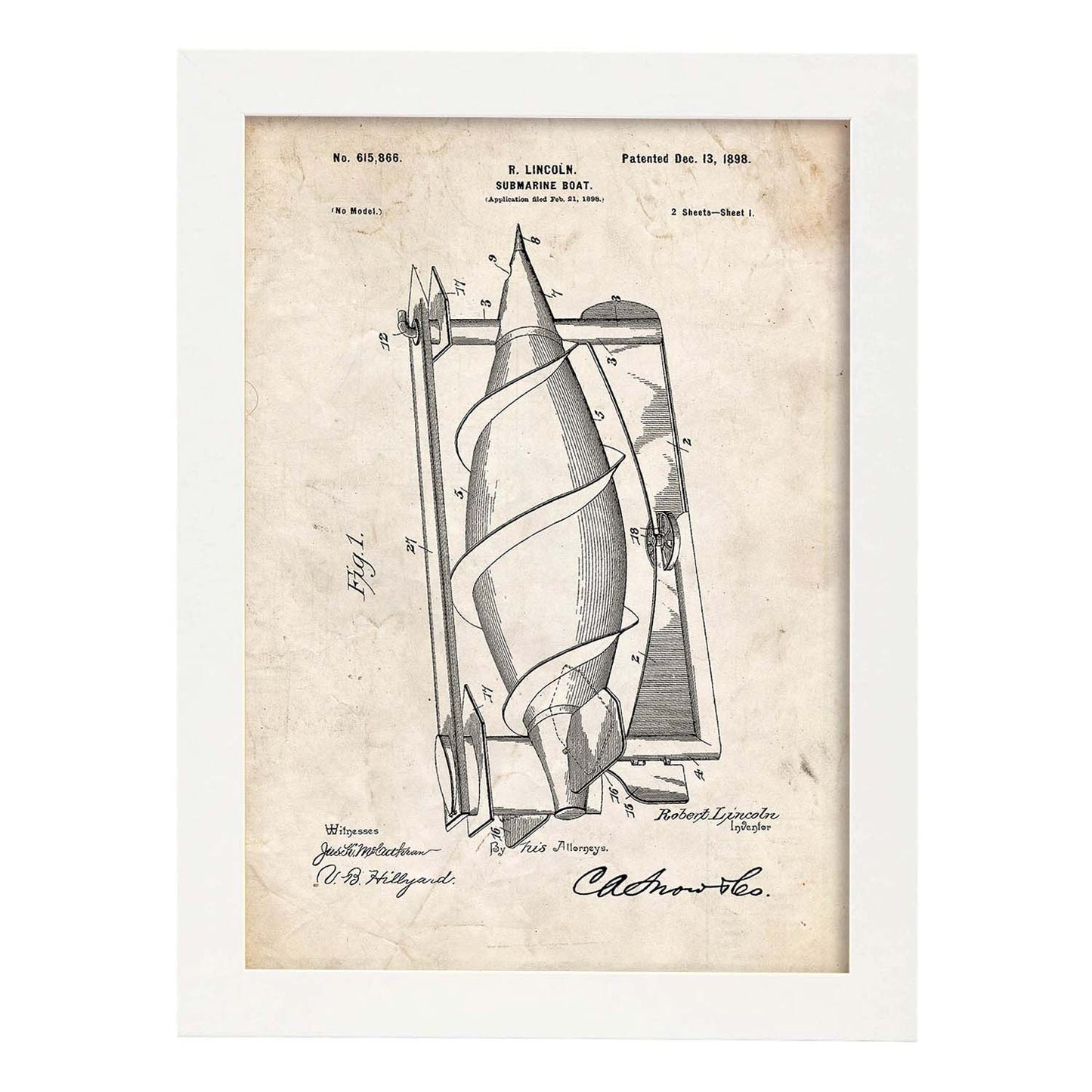 Lámina de Patente de Submarino Antigua
