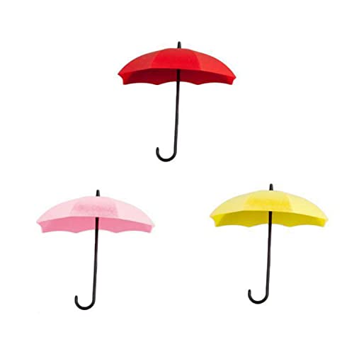 Set de 3 Colgadores de Pared con Paraguas Coloridos Multiuso Autoadhesivos