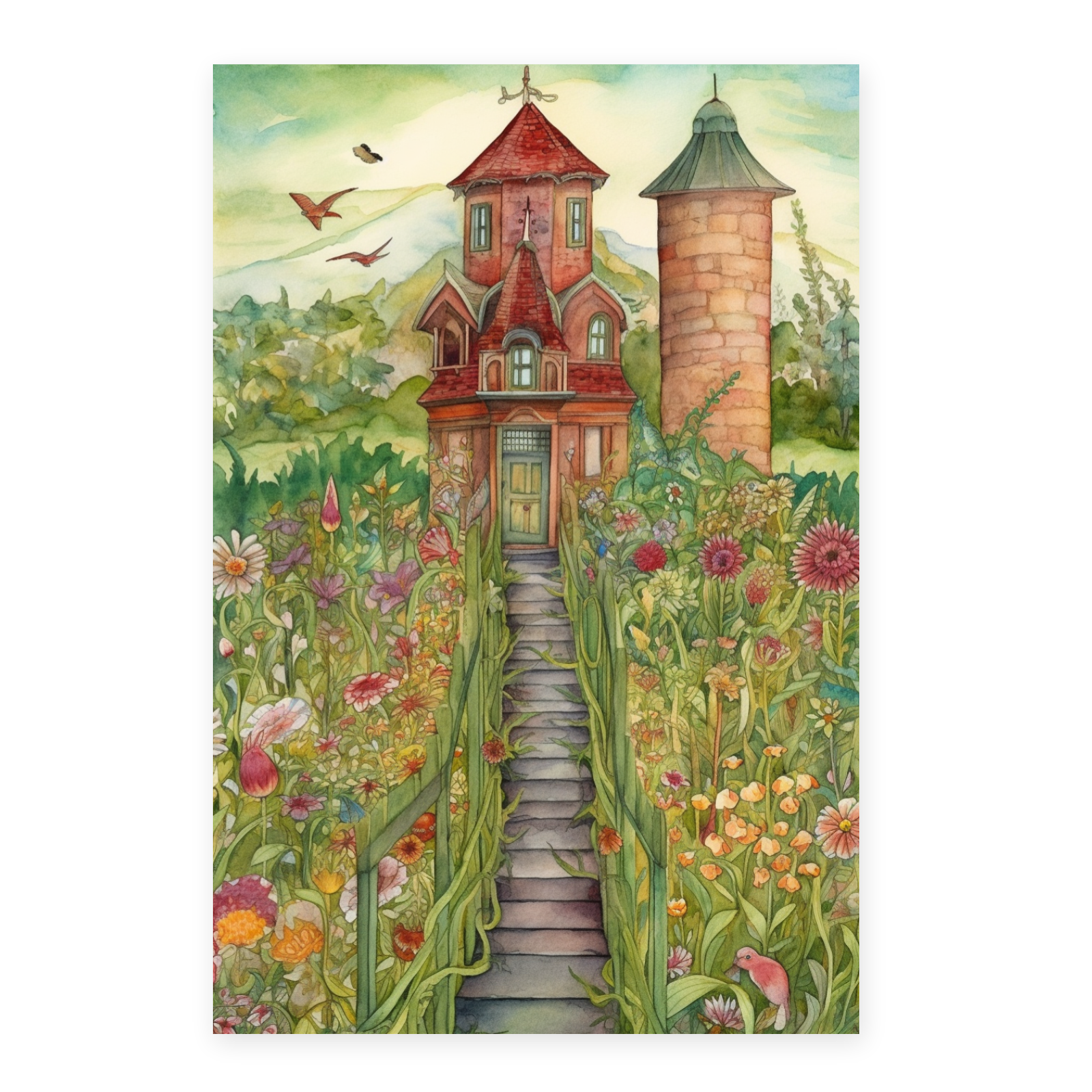 Cartel del Jardín Acuarela con Flores