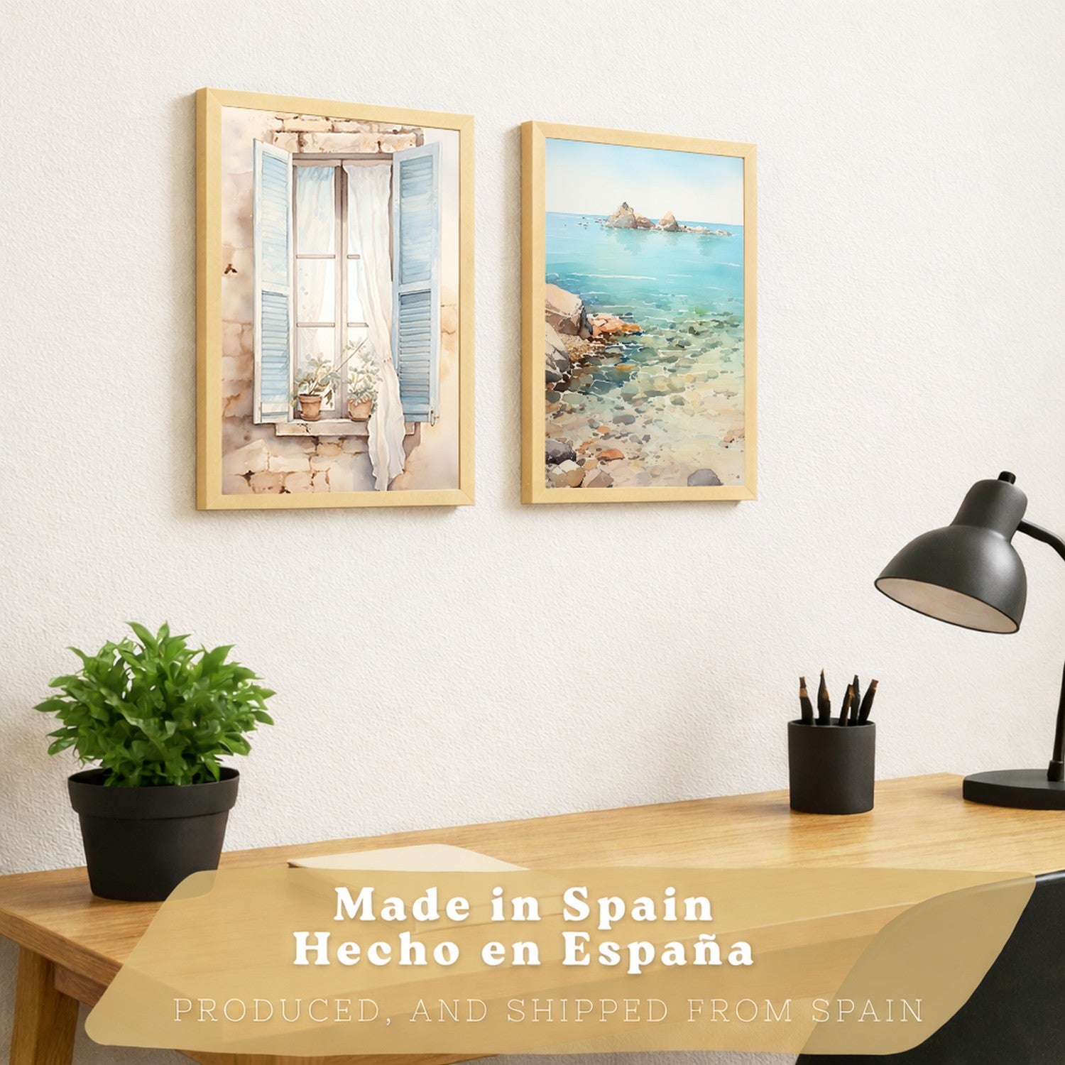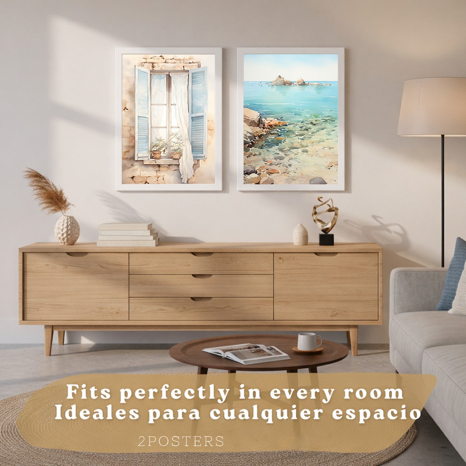 Set de 2 laminas decorativas pared Mar, relax Salon modernos - Posters, cuadros decorativos azules. Mediterraneo. Decoración Dormitorios.