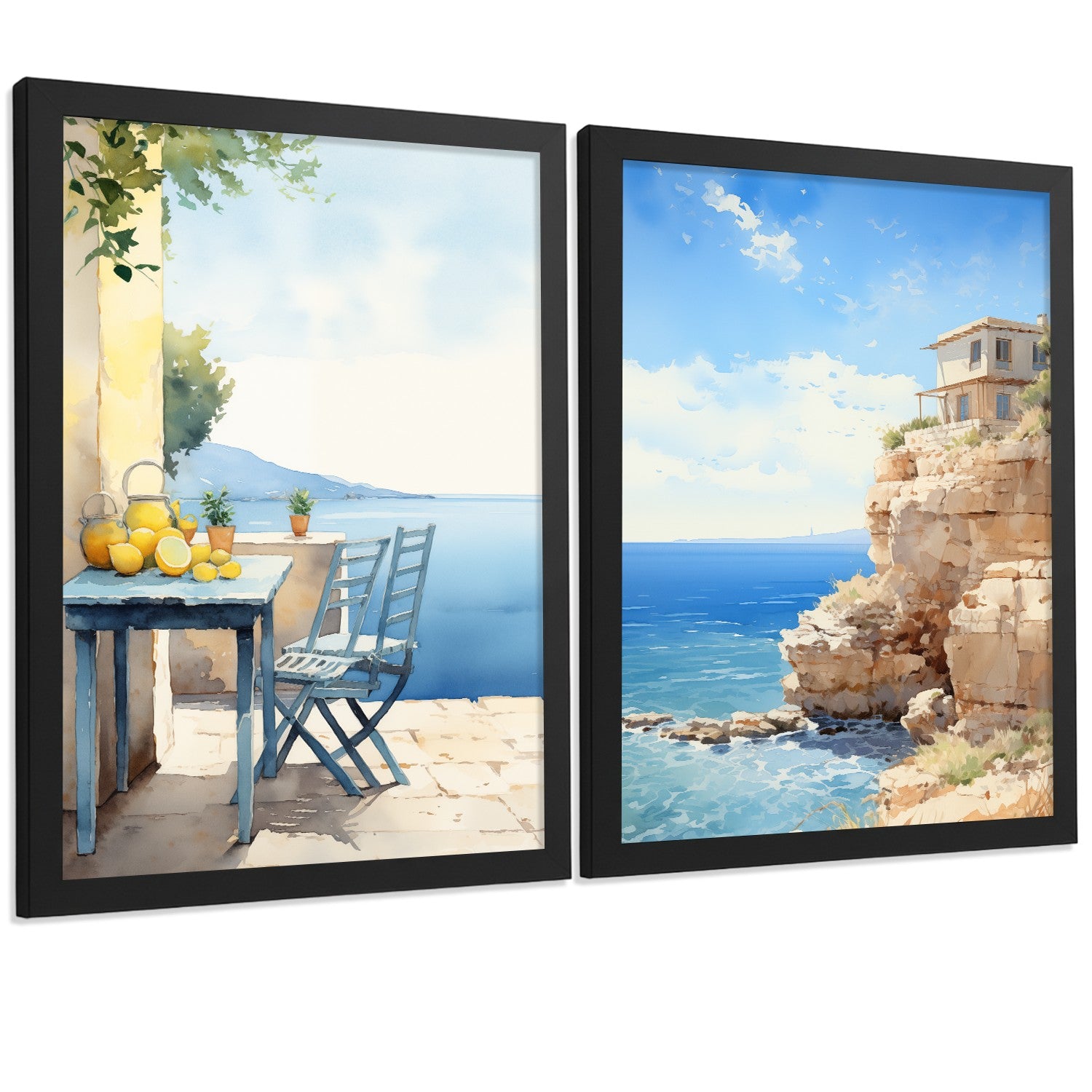 Set de 2 laminas decorativas pared Playa, relax Salon modernos - Posters, cuadros decorativos azules. Mediterraneo. Decoración Dormitorios.
