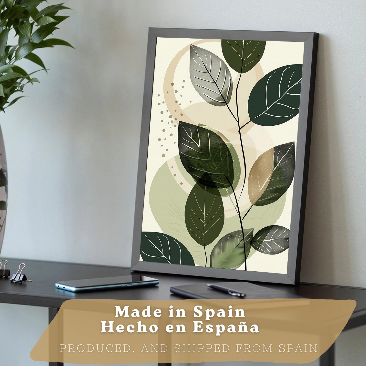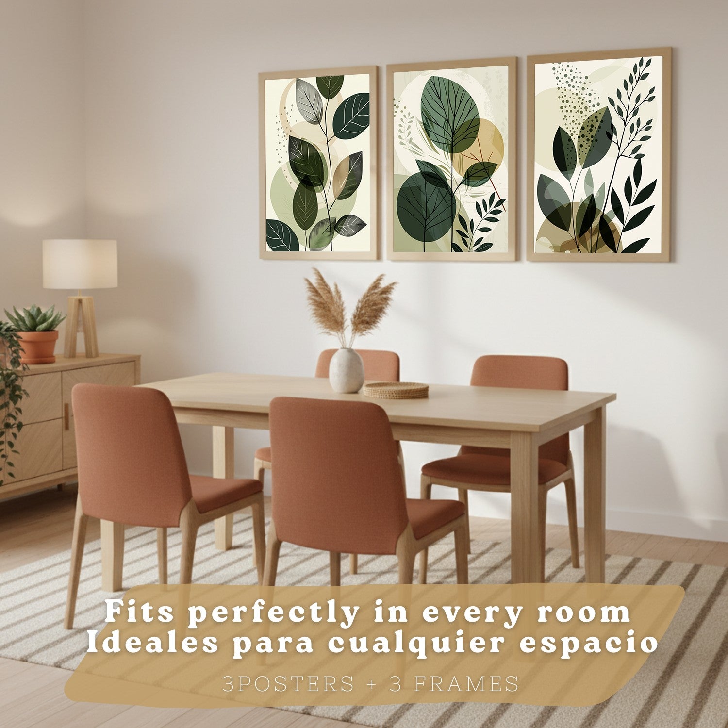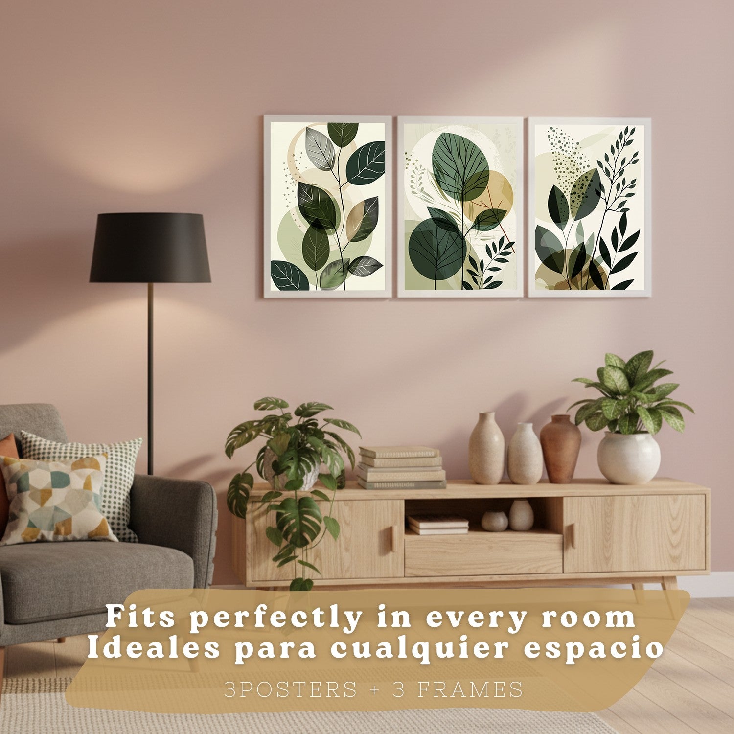 Set de 3 laminas decorativas Plantas Abstractas Verdes Cuadros Salon modernos - Posters decorativos Botanico Decoración Dormitorios.