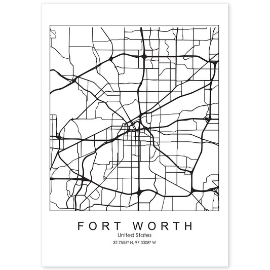 In offertaLámina de Mapa y Carreteras de Fort Worth