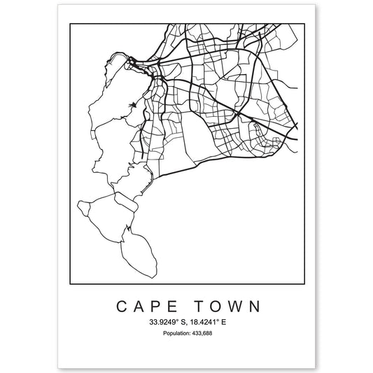 Lámina estilo nórdico de mapa de Cape Town en blanco y negro