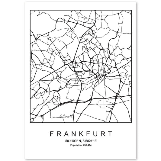Lámina estilo nórdico de mapa de Frankfurt en blanco y negro