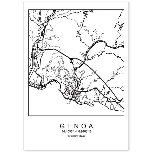 Lámina estilo nórdico de mapa de Genoa en blanco y negro