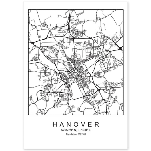 Lámina estilo nórdico de mapa de Hanover en blanco y negro