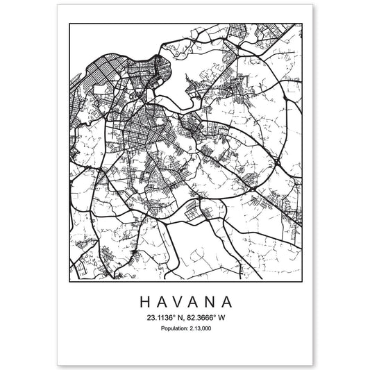 Lámina estilo nórdico de mapa de Havana en blanco y negro