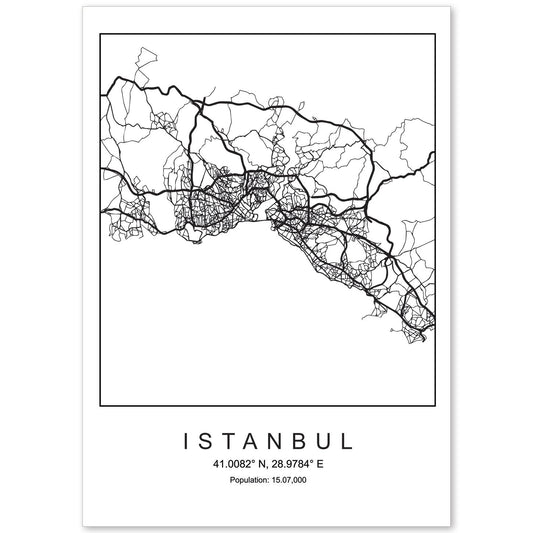 Lámina estilo nórdico de mapa de Istanbul en blanco y negro