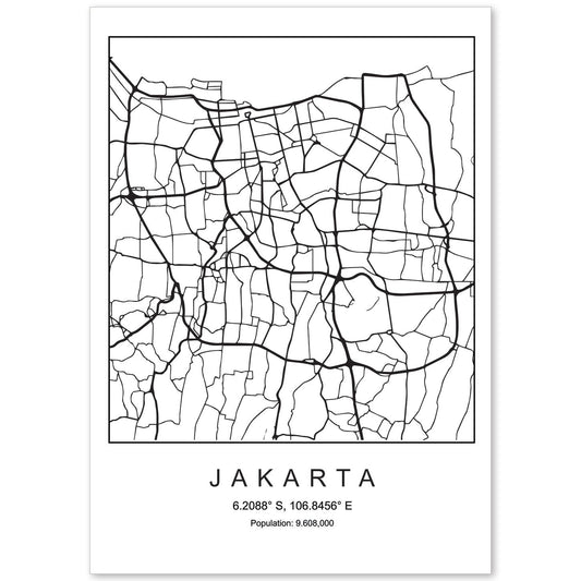 Lámina estilo nórdico de mapa de Jakarta en blanco y negro