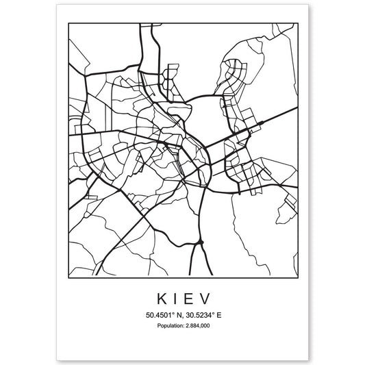 Lámina estilo nórdico de mapa de Kiev en blanco y negro