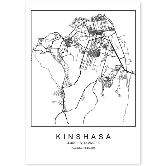 Lámina estilo nórdico de mapa de Kinshasa en blanco y negro