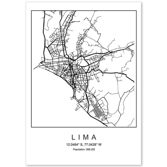 Lámina estilo nórdico de mapa de Lima en blanco y negro
