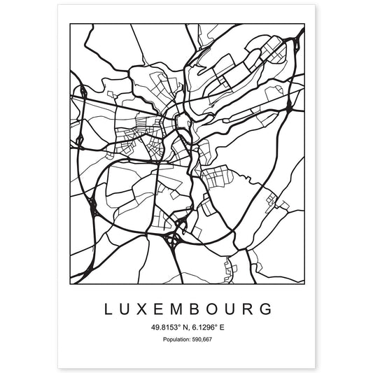 Lámina estilo nórdico de mapa de Luxembourg en blanco y negro