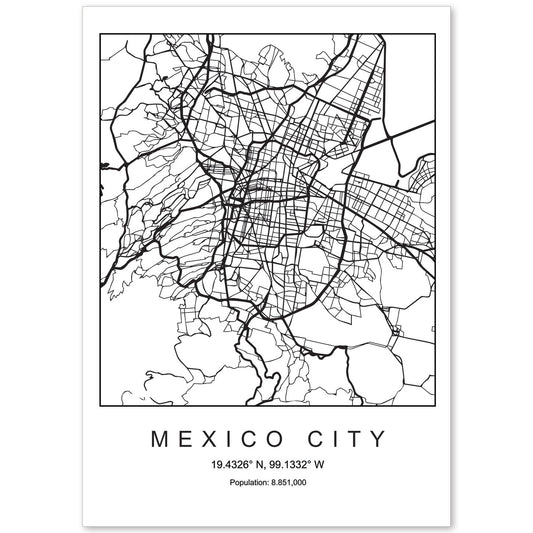 Lámina estilo nórdico de mapa de la ciudad de México en blanco y negro