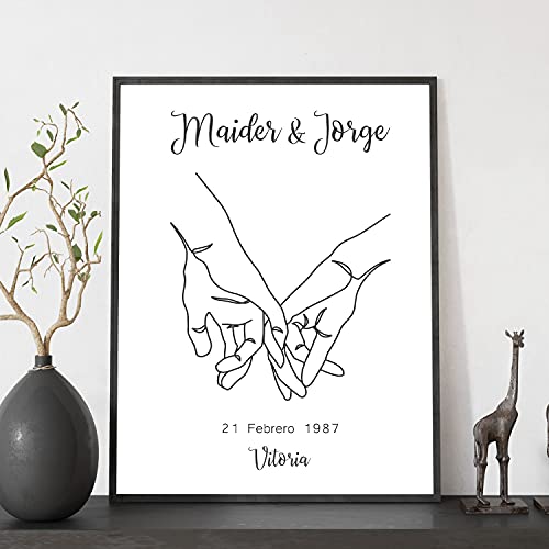 Lámina Personalizada Nacnic de Manos de Pareja con Nombres, Fecha y Lugar